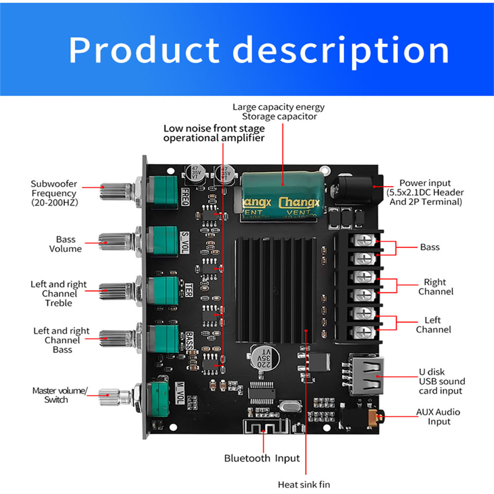 Product Name: 2.1-channel Bluetooth-compatible Audio Power Amplifier Board Module